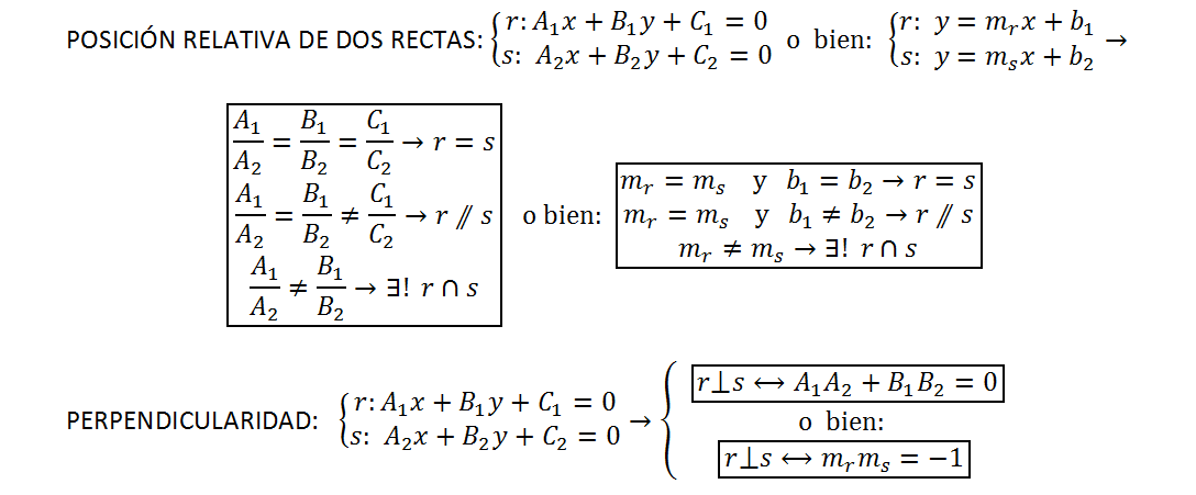 Tienes a tu disposición los vídeos de ecuaciones de la recta que pasa por dos puntos conocidos, y los vídeos de las rectas perpendiculares a una recta dada, que pasan por un punto exterior a ella.