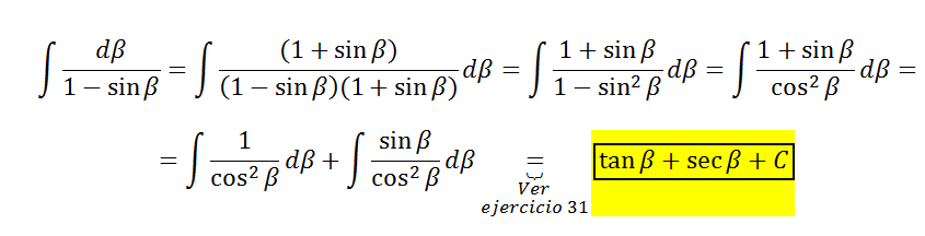 luego integras, y tienes una integral directa en el primer término, y la integral del ejercicio 31 en el segundo término.