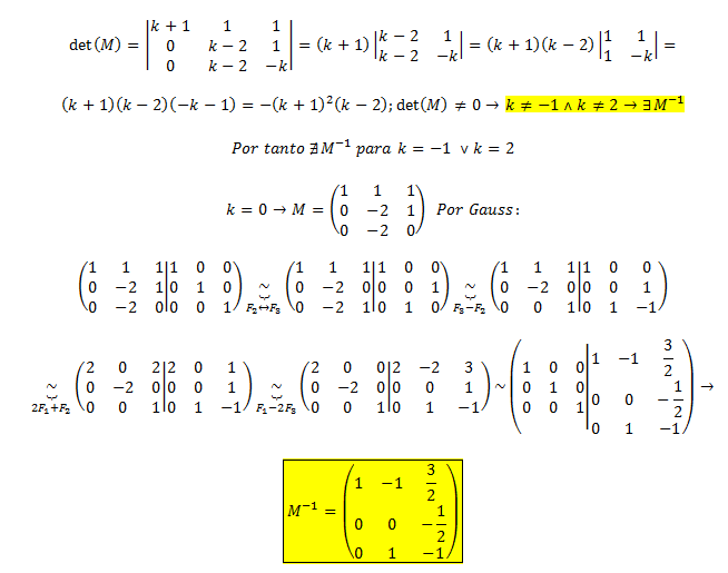 a) Calcular los valores del parámetro k para los que la matriz M no es invertible.
