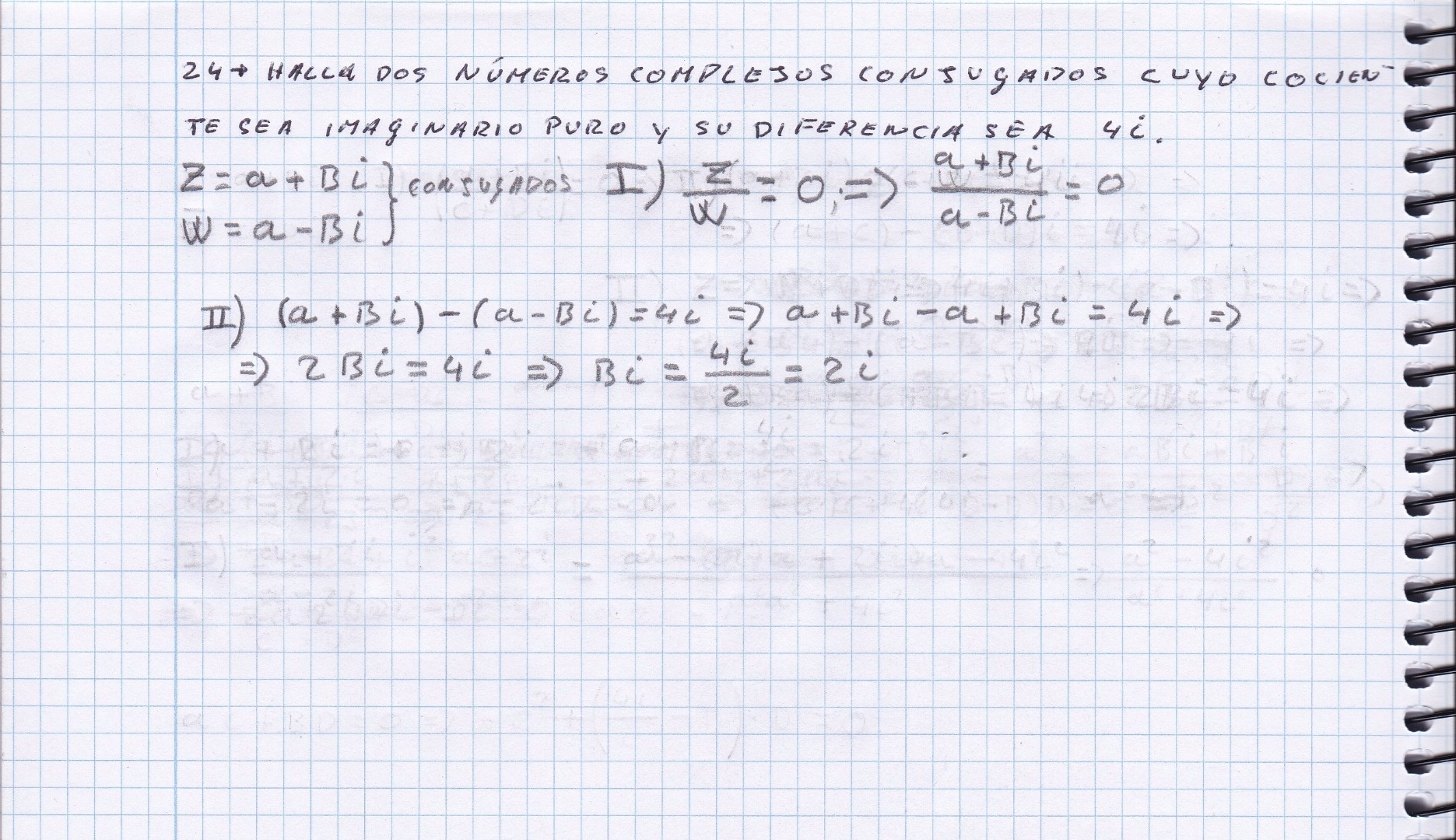 Hola César gracias por la rápida respuesta pero tengo una duda. Detrás de – b al cuadrado ¿no iría una i al cuadrado? Y en 2bi=4i tienes razón se me paso simplificarla. Me da que tengo una base bastante mala después de algo más de 16 años sin tocar los estudios y no sé si conseguiré sacar adelante el bachiller.