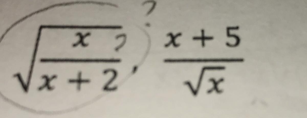 f(x) = √( x/(x+2) ) = √(x)/√(x+2) = x1/2/(x+2)1/2 = x1/2*(x+2)-1/2,