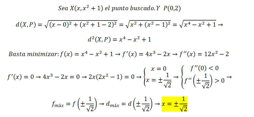 Obtén las abscisas de los puntos de la parábola y= x2+1 que están más cerca del puto (0,2).