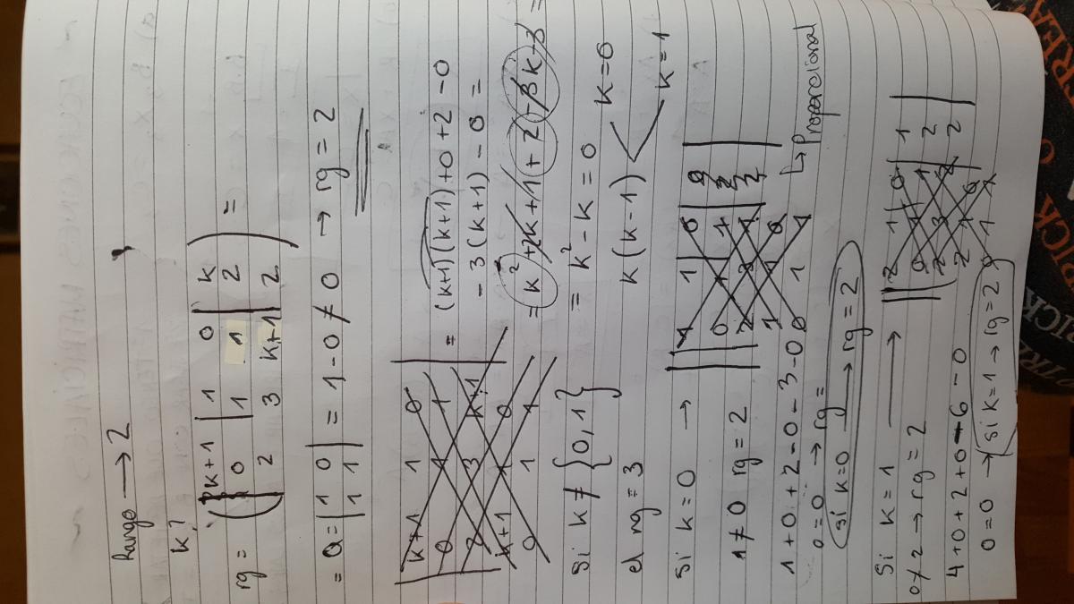 Y para k=1, lo mismo. el rango de la matriz A es 2, pero debes comprobar el rango de la matriz ampliada....