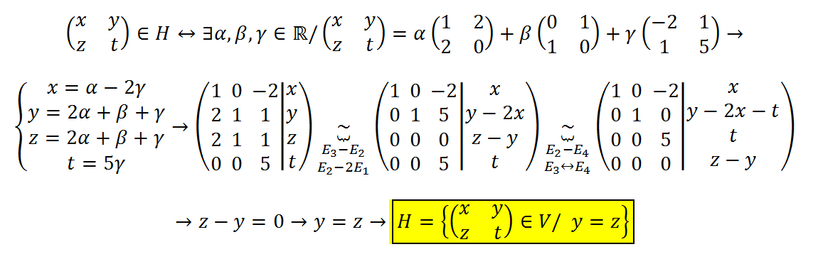 Determinar el valor de x para que el vector (1,x,5) pertenezca al subespacio .