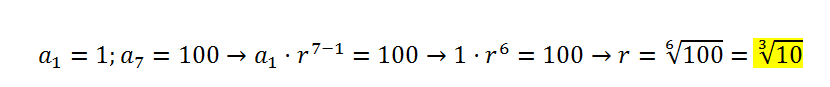 Necesito saber la razón de una Progresión Geométrica, el primer término es 1 y el último 100 y como lo hago.