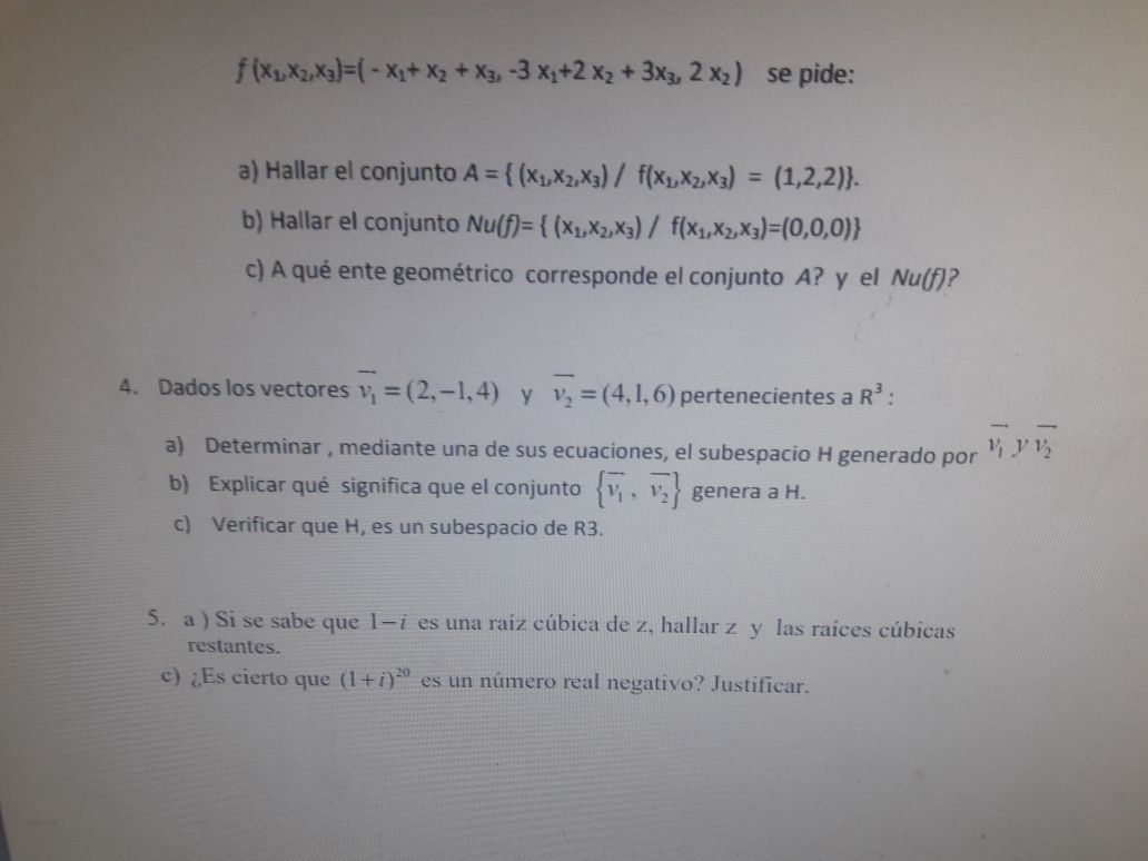 Buenas tardes, en el ejercicio 4)a Lo que intente hacer fue hacer un sistema de ecuaciones hallando los (x,y,z) formados por la combinación lineal de los vectores dados. El sistema me dio incompatible, pero no estoy seguro si esa es la manera correcta de hacer el ejercicio. Gracias por su tiempo.