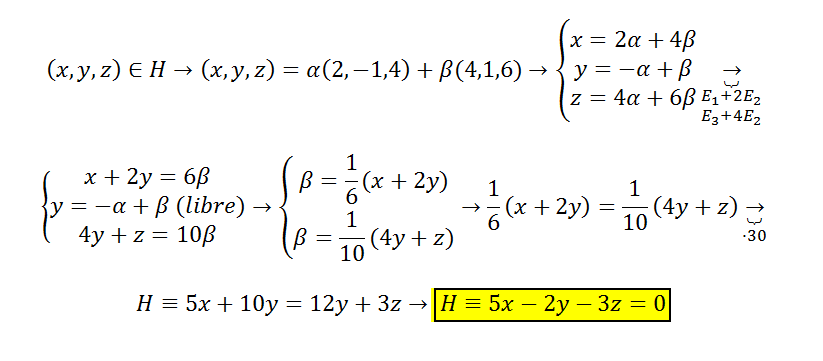 Sea Π el plano de ecuación [(x,y,z)−(1,2,−1)]·(2,−1,3) = 0.