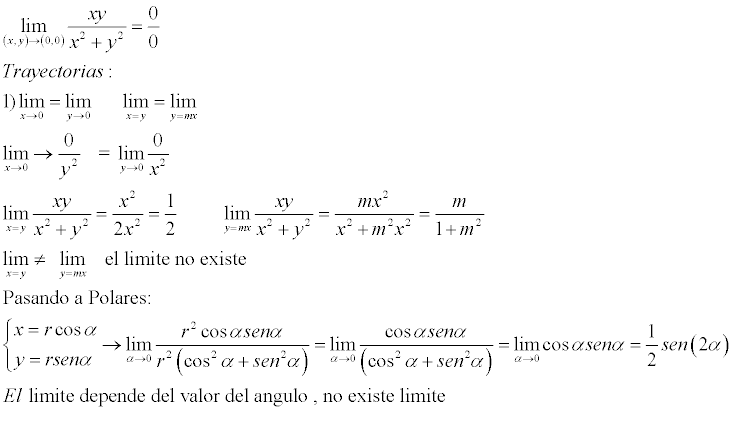 Luego, comienza por estudiar el límite para caminos rectos que pasen por el origen, cuya ecuación general es: y = m*x, con x ∈ R, y queda: