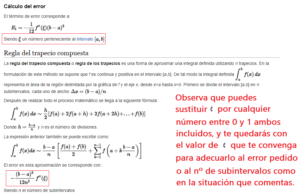 Tengo que determinar el número de subintervalos n de modo que la regla del trapecio compuesta de el valor de una integral (que está entre 0 y 1) .
