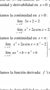 Par que la función sea también continua en x=pi, el límite por la izquierda y el límite por la derecha han de coincidir, y ya usamos que a=1. Obtenemos que b=-2.