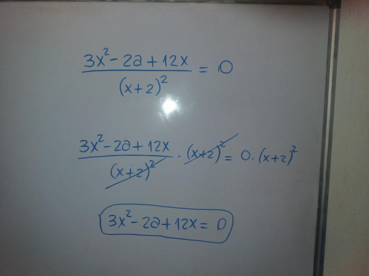 Espero que así te haya quedado más claro, he multiplicado por (x+2)^2 a ambos lados de la igualdad, en el lado izquierdo de la igualdad, hay una simplificación con el denominador, y en el lado derecho como ves, 0. (X+2)^2 = 0
