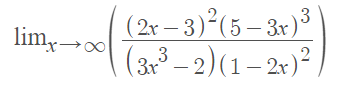 lim(x→∞) ((2x-3)2(5-3x)2*(5-3x)) / ((3x3-2)(1-2x)2)=