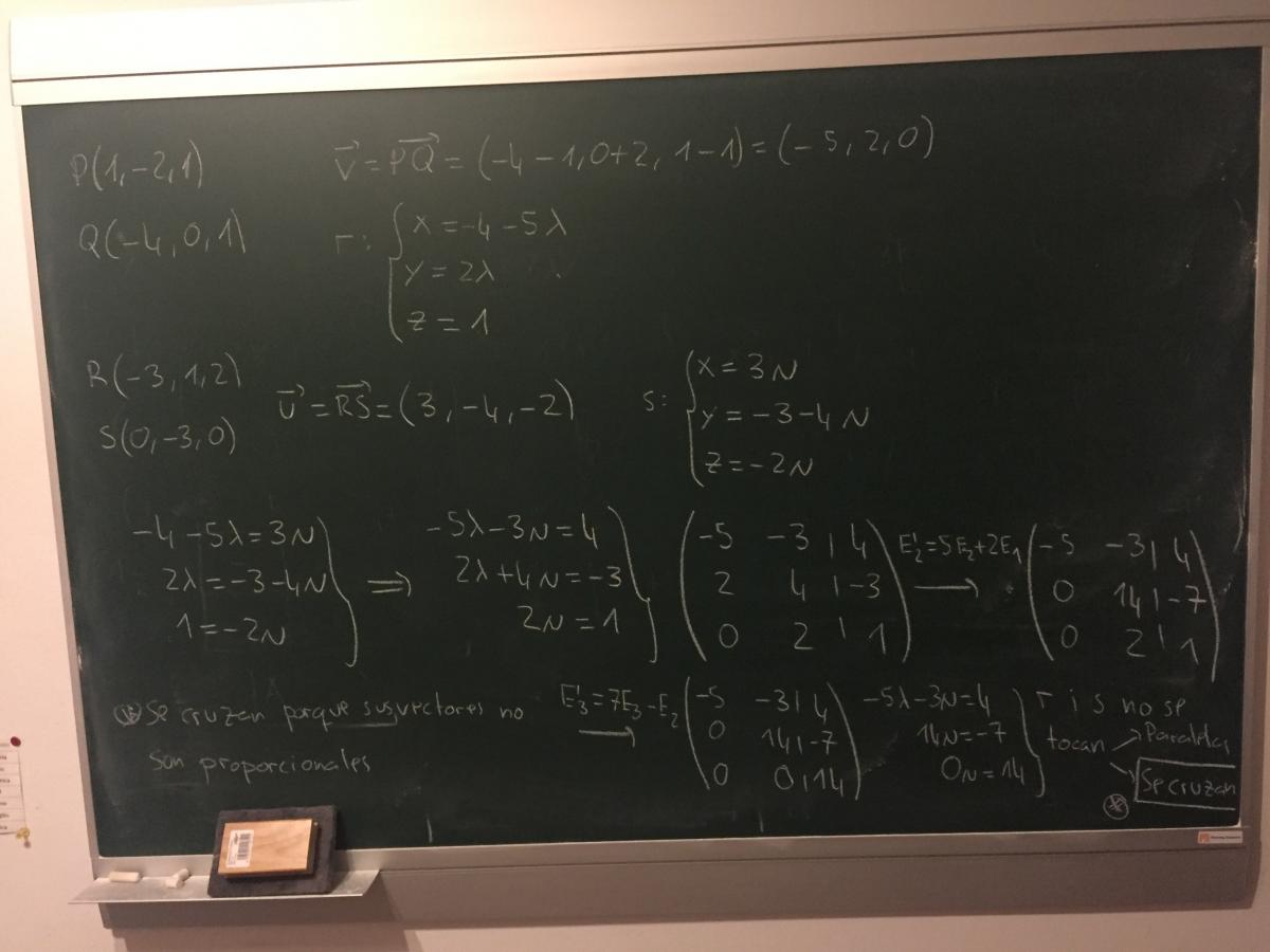 -Estudiar la posicion relativa de la recta ´ r, que pasa por los puntos P y Q, y la recta s, que pasa por R y S.