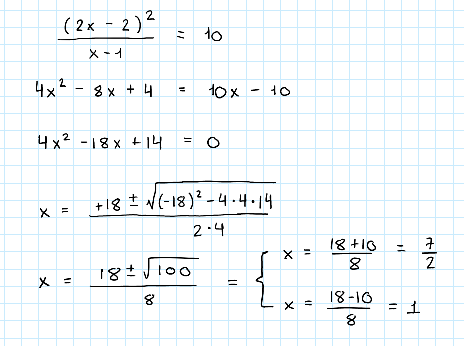 hola una pregunta como se haria (2x-2)^2 partido de (x-1) igual a 10?