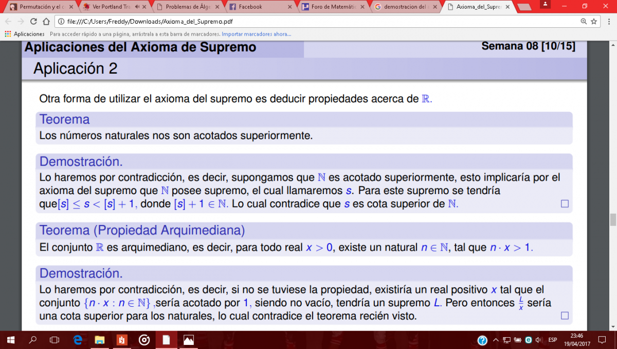 Sea S ⊂ N un subconjunto de los naturales no vacío y acotado superiormente. Probar que el supremo de