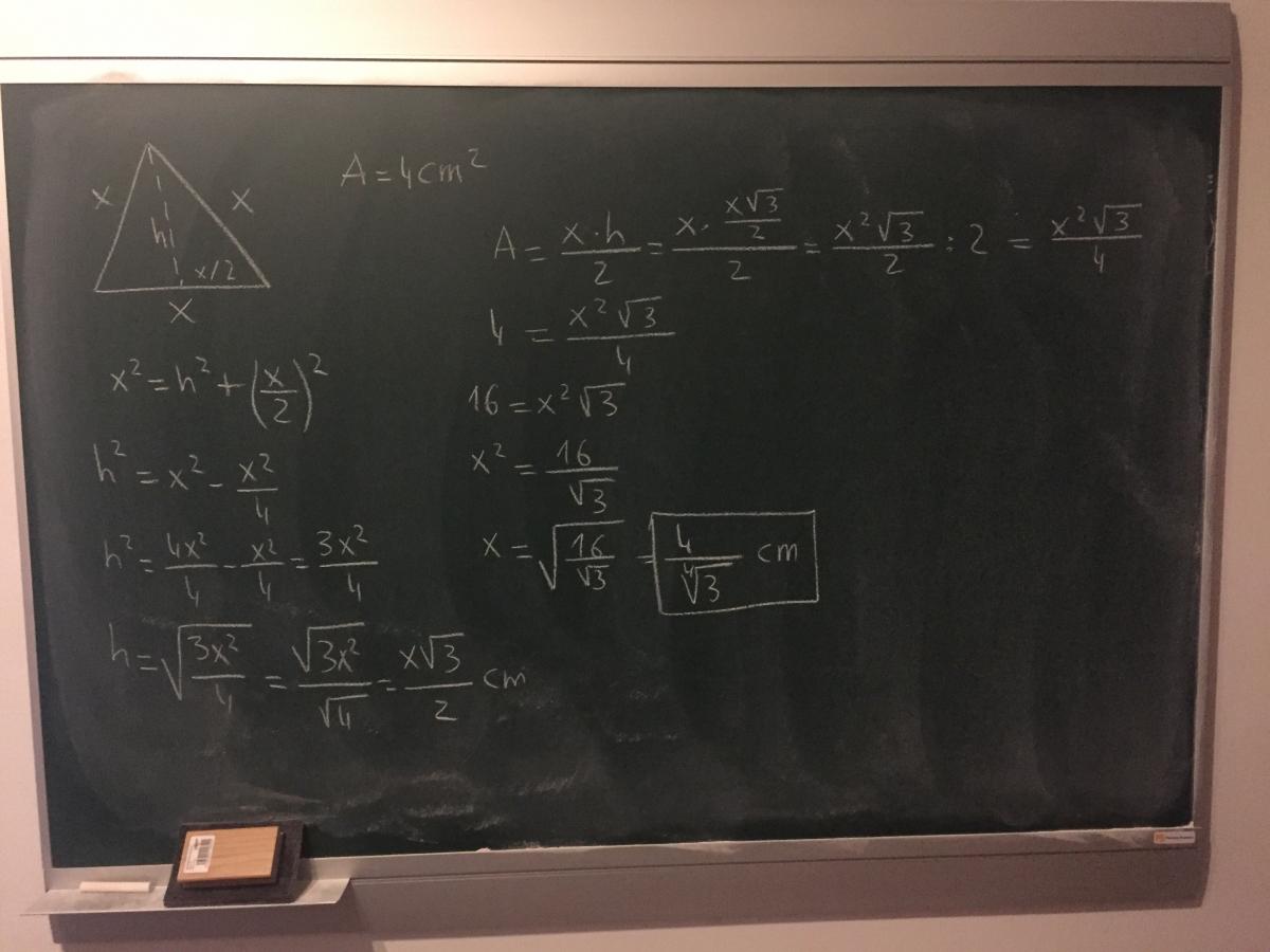 1.- Determina la longitud de los lados de un triángulo equilátero cuyo área mide 4 cm2.