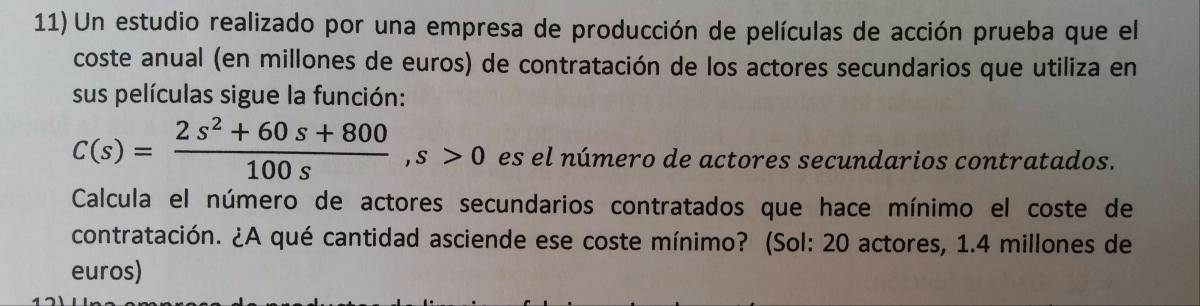luego, observa que el valor de la función para el punto crítico es menor que los dos valores testigos, por lo que podemos concluir que la función presenta un mínimo para x = 20, y que el costo mínimo es: C(20) = 1,40 millones de euros.