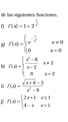 Hola! Quería saber si el dominio de la funcion g) es R o como debería hacer exactamente para hallar el dominio de esa función. Conozco el procedimiento, busqué los dominios de cada trozo de la función, y representé en la recta las partes para las que estaba definido cada trozo y los valores que se excluian de sus dominios siempre teniendo en cuenta que esos valores estén o no dentro del "area de influencia" de cada función.