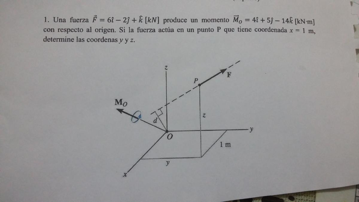 Tenemos el Momento con respecto al origen: M = < 4 , 5 , - 14 > (en KNm).