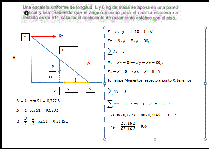 Hola, estoy haciendo problemas de estática, todo bien cuando tengo el diagrama de fuerzas, es decir, aplico correctamente las condiciones de equilibrio, el problema es que hay casos en los que las fuerzas me confunden, por ejemplo, una escalera apoyada en una pared, la reacción de la pared sobre la escalera, es perpendicular a la pared, y según esto si tengo una viga anclada fija a una pared perpendicular a dicha viga, según entiendo la reaccion de la pared deberia ser perpendicular a la propia pared, es decir paralela a la viga, sin embargo en muchos problamas así, veo que se dibujan dos fuerzas sobre la viga, una perpendicular y otra paralela. Alguien me puede ayudar?? Gracias