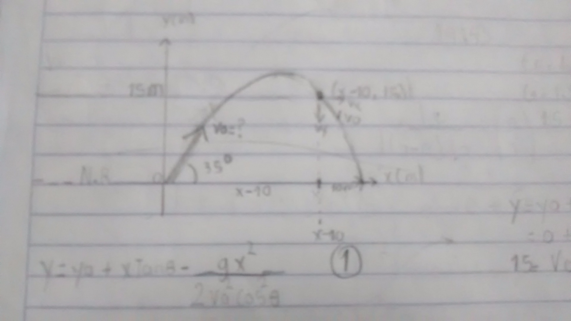Las ecuaciones generales de x e y son x=vo.cos35.t ...... y=vo.sen35.t - 4,9t²