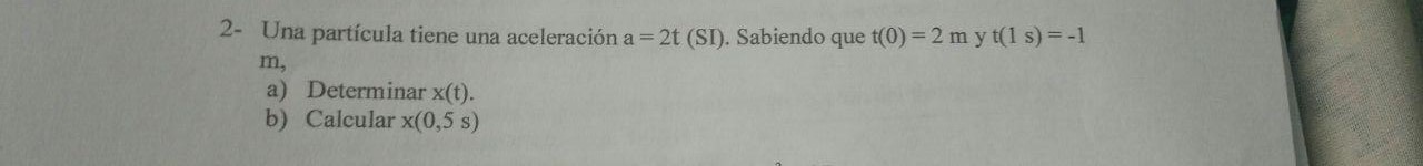 holaa, podrian ayudarme con este problema , me pide averiguar la funcion posicion x(t), pero no se bien como tendria que usar los datos t(0) y t(1s)