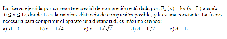 Derivamos... F'(d)=2kd-L... Igualamos a 0... 2kd=L... d=L/(2k) Ese será tu maximo, que no aparece en la solución....