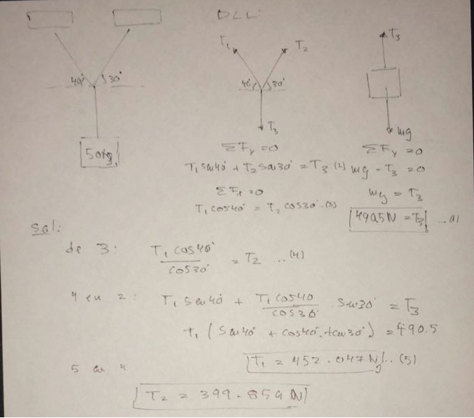 PD: Cómo se hace un diagrama de cuerpo libre de la caja de 50 kg para la tensión 3