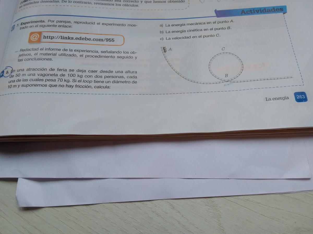 Luego, si consideras que las pérdidas de energía por rozamientos son despreciables, puedes plantear conservación de la energía mecánica entre el punto C y el punto A, y tienes la ecuación: