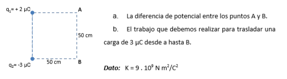 Luego, solo queda que reemplaces el valor de la constante de Coulomb, los valores de las cargas y los valores de las distancias, para luego hacer el cálculo (te dejo la tarea).