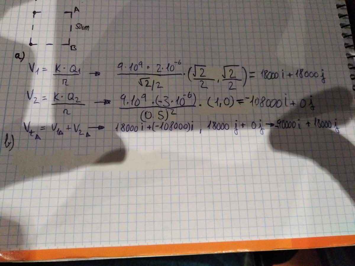 VA = V1A + V2A, sustituyes las expresiones de los potenciales, y queda: