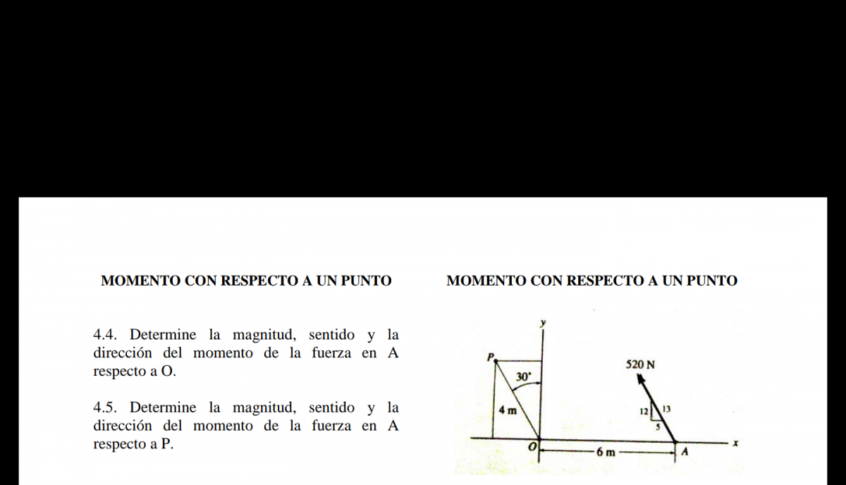 y observa que los módulos de las componentes de esta fuerza y sus respectivos brazos de momento son: