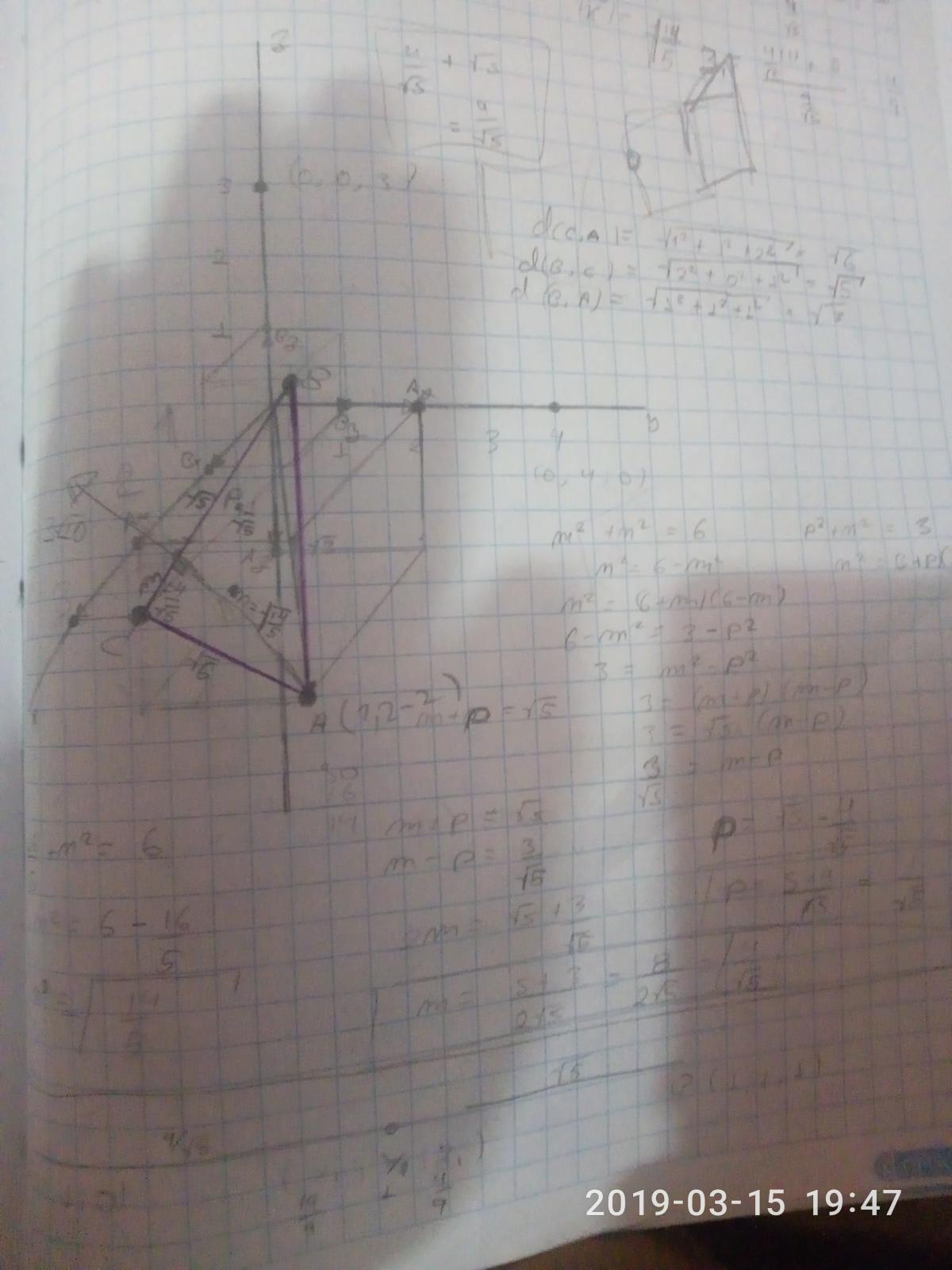 por lo que tienes que el punto de intersección ente la recta BC y el plano perpendicular a ella que pasa por el punto A es el punto: M(3,1,0).