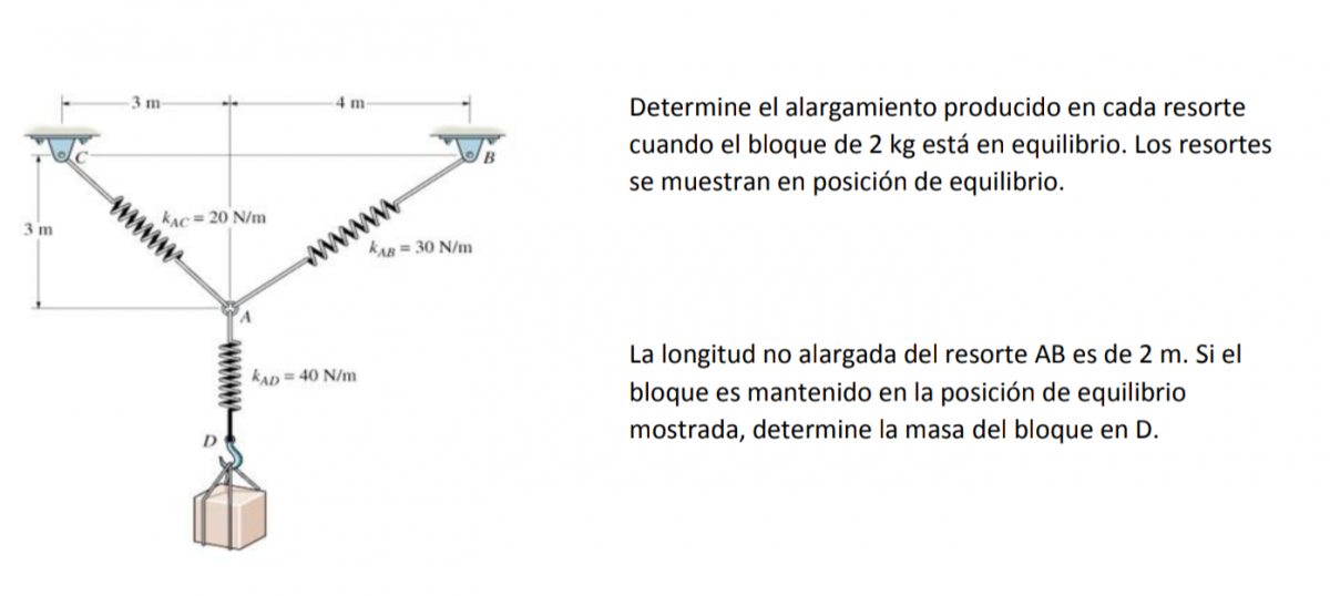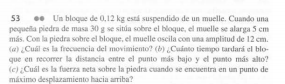 El problema dice así: un resorte de masa 0.01 kg tiene una longitud en equilibrio de 0,2 m. Una fuerza de 500 N lo mantiene estirado hasta el doble de su longitud original.