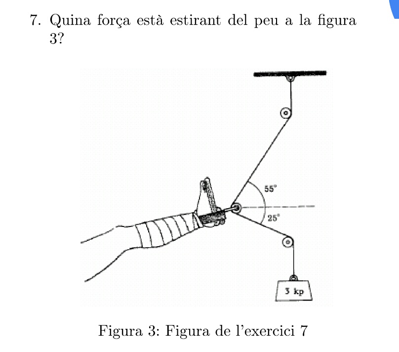 Luego, estableces un sistema de referencia con origen de coordenadas en el eje de la polea sujeta al pie, con eje OX horizontal con sentido positivo hacia la derecha, y con eje OY vertical con sentido positivo hacia arriba, todo según la figura que tienes en tu enunciado.