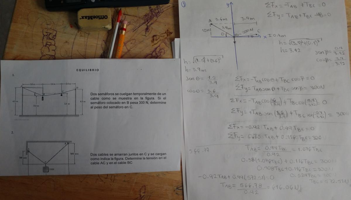Observa que sobre el semáforo ubicado en C actúan tres fuerzas: