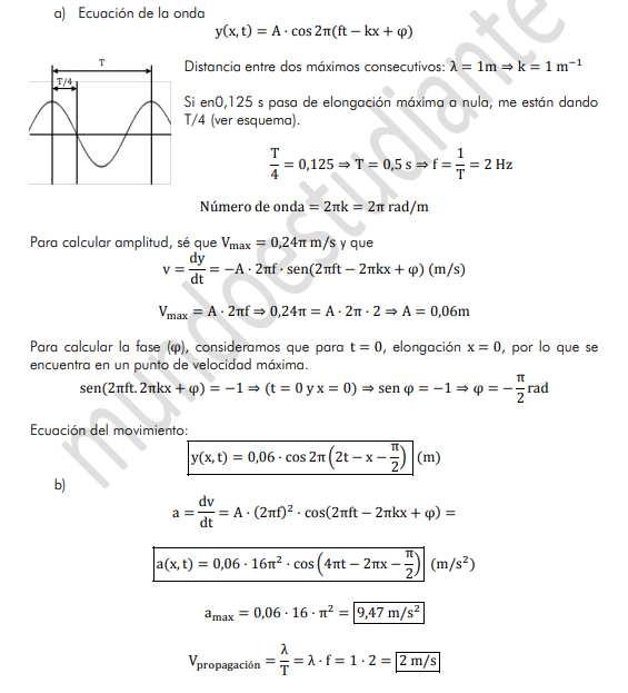 b) Calcule la máxima velocidad de oscilación transversal de los puntos de la cuerda.