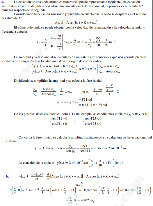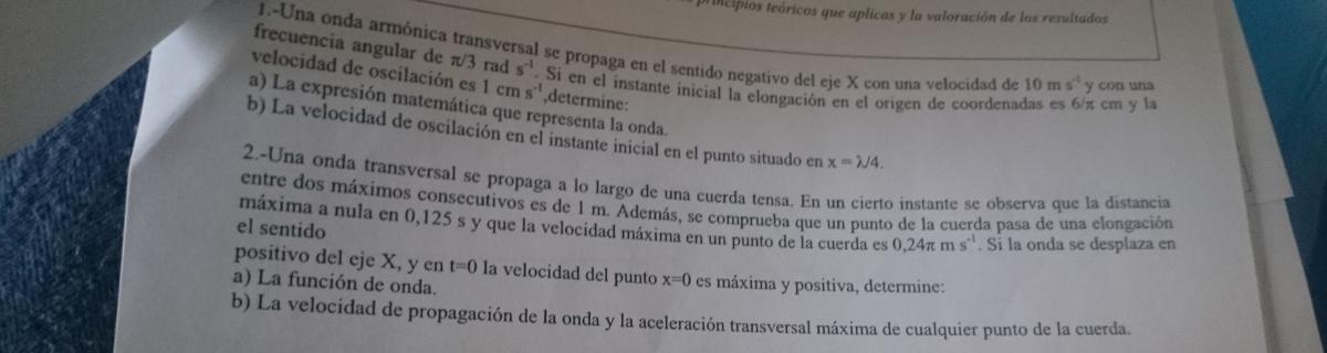 Buenas tardes en este ejercicio he resuelto parte del ejercicio y la otra para me gustaría que me ayudarais con ella y si los resultados estan bien. Gracias Por una cuerda tensa, situada a lo largo del eje OX, se propaga una onda descrita por la ecuación