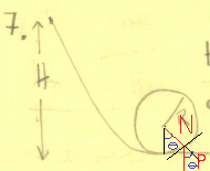 N= mgcosθ + m(2gH - 2gR(1- cosθ))/R =mgcosθ +mg2H/R -mg2R/R + 2mgRcosθ/R = mg (cosθ +2H/R - 2 + 2cosθ)