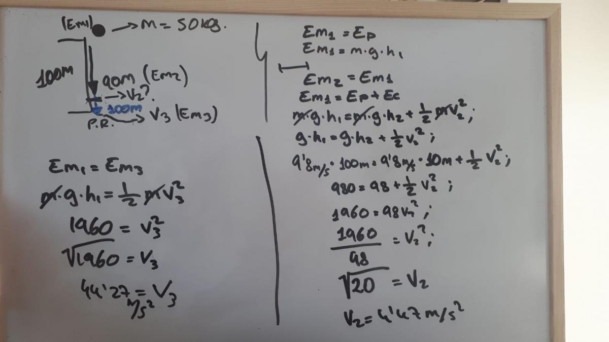 EMA = EMC, sustituyes expresiones, y queda (observa que la energía cinética en el punto A es igual a cero), y queda:
