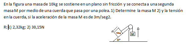 98*sen(37°) - T = 10*3, de aquí despejas: T = 98*sen(37°) - 30, resuelves y queda: T ≅ 28,978 N,