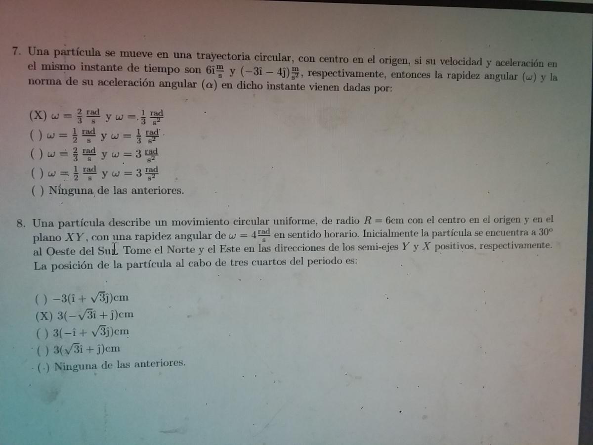 Considera el instante inicial: ti = 0, para el cuál la posición angular del móvil es: θi = -2π/3 rad (-120º).
