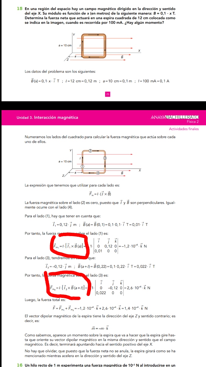 Otra duda es en el 15, multiplica el campo magnético B por la distancia que te dan "B(a)" y después "B(a+l)".