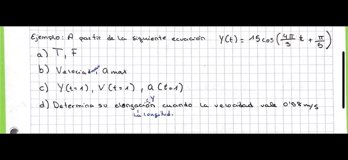 buenas noches!, tengo una duda sobre un apartado de un ejercicio del movimiento armonico simple, el apartado "d". Tengo la solucion pero no se como se consigue el sin o porque hace desaparecer el tiempo de la ecuación. Creo q me he saltado varios pasos al copiarlos y a la hora de estudiar no lo entiendo. si alguien me lo puede explicar me seria de gran ayuda. gracias.