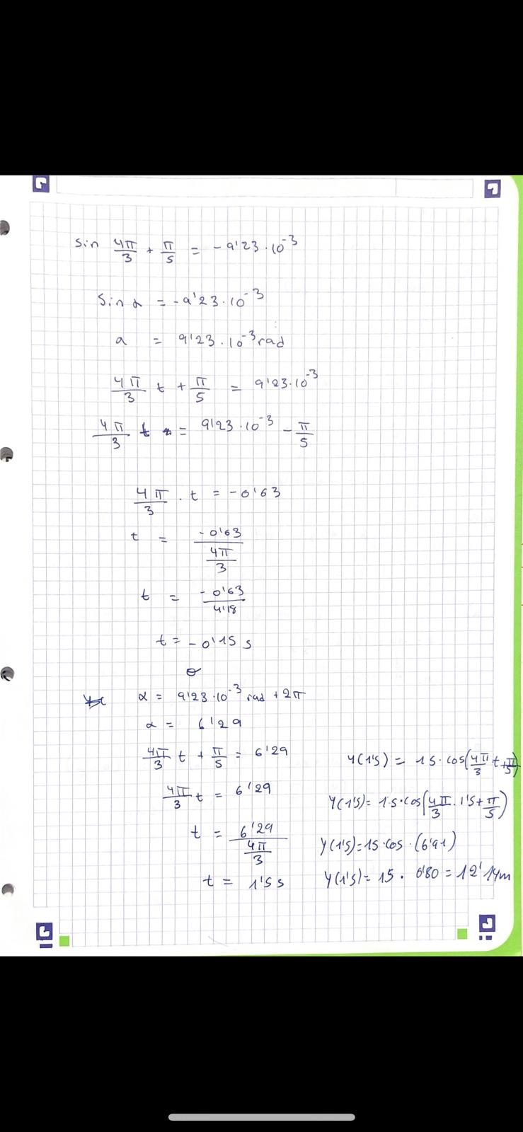 -0,58/20π=sen(4πt/3 + π/5) dándole la vuelta a la ecuación: