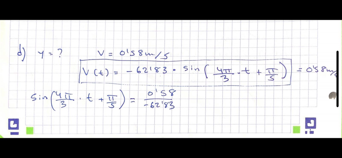 v(t)=dy/dt=-15·4π/3·sen(4πt/3 + π/5)=-20πsen(4πt/3 + π/5)