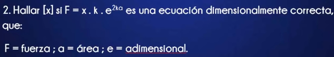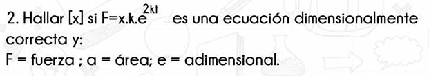 Luego, planteas la ecuación dimensional asociada a la ecuación que tienes en tu enunciado, observa que el tercer factor es adimensional, ya que su base (e) y su exponente (2ka) son adimensonales, y queda: