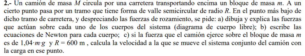 que es el módulo de la velocidad lineal del sistema camión-bloque en el punto más bajo de la superficie semicircular;