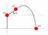 Se pide encontrar la ecuación que nos permita hallar el angulo (α) de salida de un proyectil desde (p2) sabiendo: