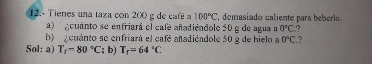 En un calorímetro se ponen en contacto térmico un bloque de hielo de 100g y 350gde agua líquida a 50°C. Sabiendo que la temperatura final de equilibrio del conjunto es de 20°C. ¿Cuál era la temperatura inicial del bloque de hielo?